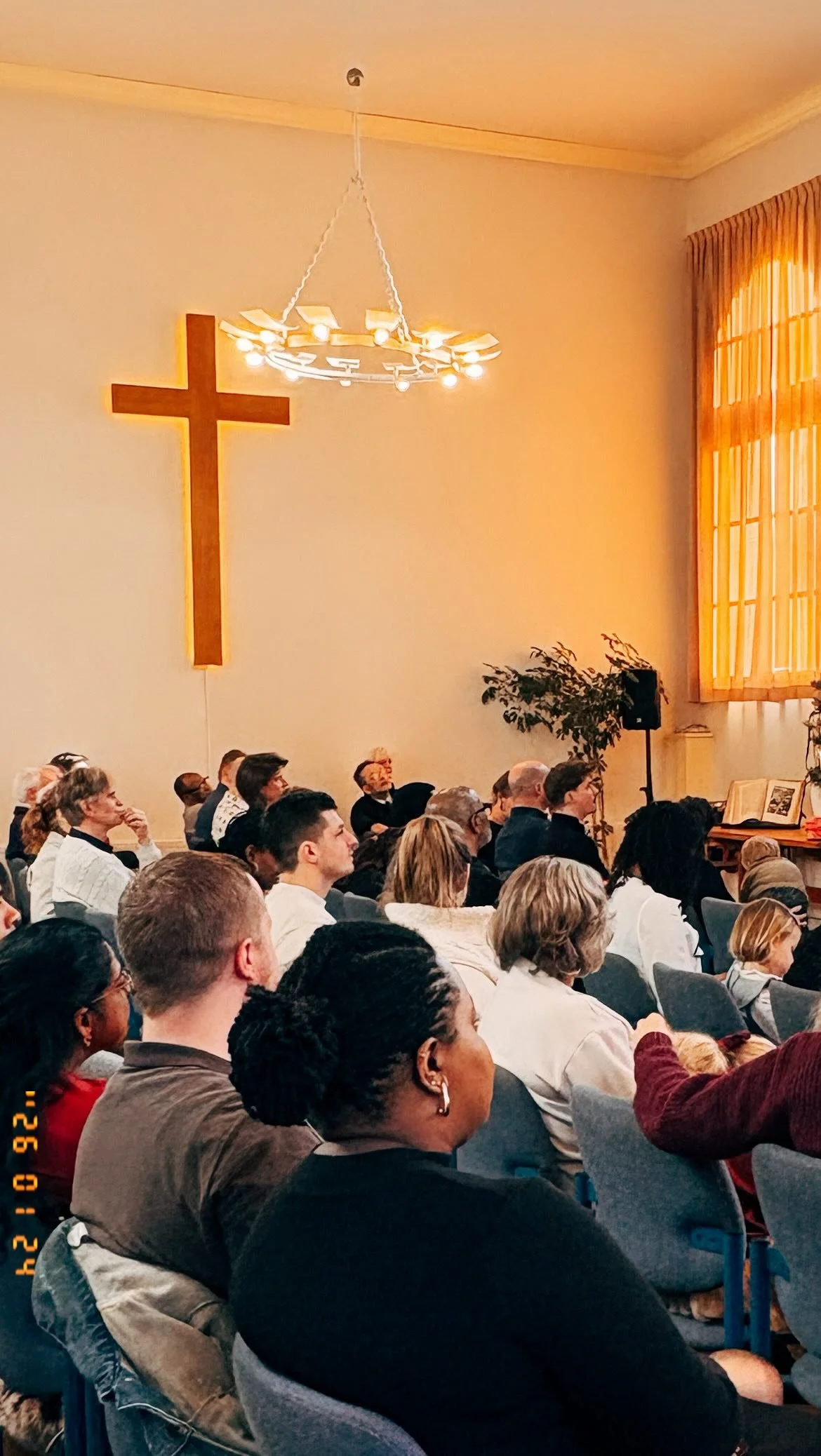 De kerkdienst op zaterdag is een gevarieerd programma met een inspirerende overdenking door een spreker, gebed, live muziek en dankberichten.